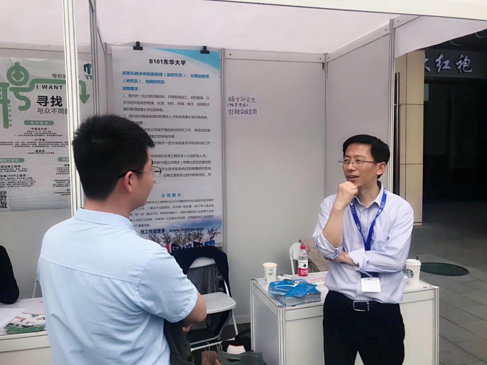 东华大学金沙js3833的展位在B区101位。在招聘会上,王新厚书记介绍了学校的总体情况,对金沙js3833引进人才的条件做了详细说明,并对人才政策、科研平台以及生活保障等方面进行了介绍,吸引了大量关注,许多人才表达出希望到加入我院的意愿,并投递了简历。