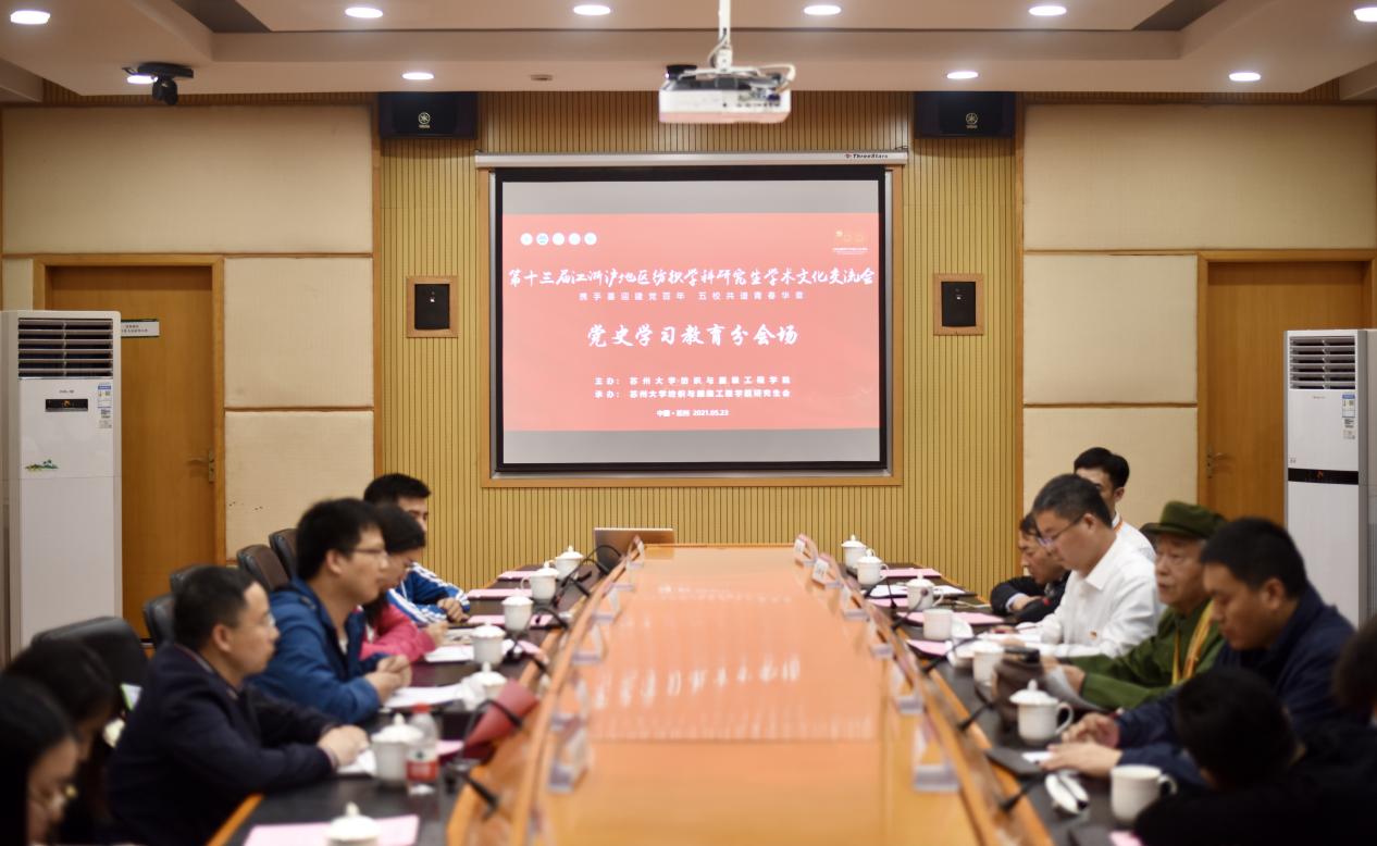 活动中,五校纺织学科师生党员同上一堂党课,邀请抗美援朝老兵、原苏州丝绸工学院染化系党总支书记任志讲授专题党课。93岁的任老追忆了他作为志愿军空军参加抗美援朝的峥嵘岁月,并给与会的青年党员上了一堂生动的党课。他鼓励大家要坚定理想信念,倍加珍惜党和国家宝贵的精神财富,弘扬伟大的抗美援朝精神,在学习党史的过程中,结合自身实际付诸实践,做到明理增信、崇德力行 ,为中华民族伟大复兴贡献自己的力量。党课中,五校围绕如何更好发挥学校红色资源和专业资源优势,如何将课程思政与党史学习教育相融合等主题开展交流研讨,各自分享了学院在开展党史学习教育过程中的思路与做法、传承与创新,并商议开展“党史学习教育接力行”五校联学共建活动,在加强兄弟高校间互动交流的同时,进一步增强各校师生党史学习的积极性和创造性,不断为党史育人赋能增效。