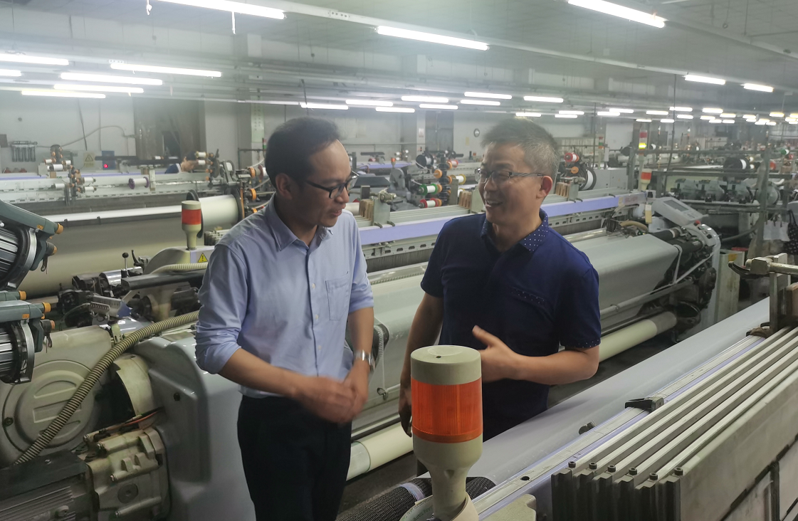 上午,在东华大学国家大学科技园总经理徐晓冬的带领下,王富军一行与园区企业代表见面,并走访调研了特欣纺织、吉斯玛尔时装、吉力纺织等多家纺织企业。在园区内,集聚大小规模的公司数十家,从织造、染整到成衣的厂房、工作室一应俱全,涵盖了纺织产业链的各个环节。企业代表介绍,他们深耕纺织产业多年,非常注重产品研发和技术创新,期待与金沙js3833开展深入的科研合作。