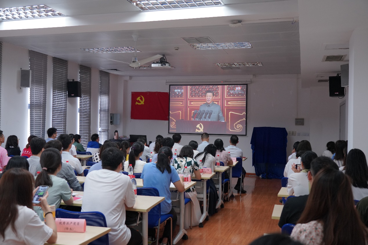 为庆祝中国共产党成立100周年,7月1日,金沙js3833党委组织师生党员集体观看庆祝中国共产党成立100周年大会。认真聆听习近平总书记发表的重要讲话,并举行“示范先锋在基层,百年奋进新征程”金沙js38332021年“两优一先”表彰大会。学院党政领导班子成员出席会议,教师与学生党员代表、“两优一先”表彰对象以及学院2021年新发展党员参加活动。
