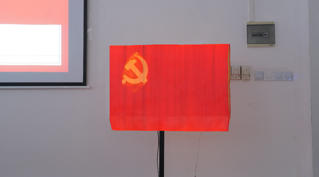 会上,学院党政班子成员分别为优秀共产党员、优秀党务工作者和先进基层党组织颁发荣誉证书。“经纬党旗”团队负责人孙宝忠向大家展示了团队研制的发光党旗,作为献给建党百年的生日礼物。该党旗采用光纤材料与大提花织造工艺制作而成,通过与外部光源耦合实现党徽发光的效果。孙宝忠还详细解密了“经纬党旗”的制作细节,及其背后的象征意义,充分展示了纺织科技的魅力。