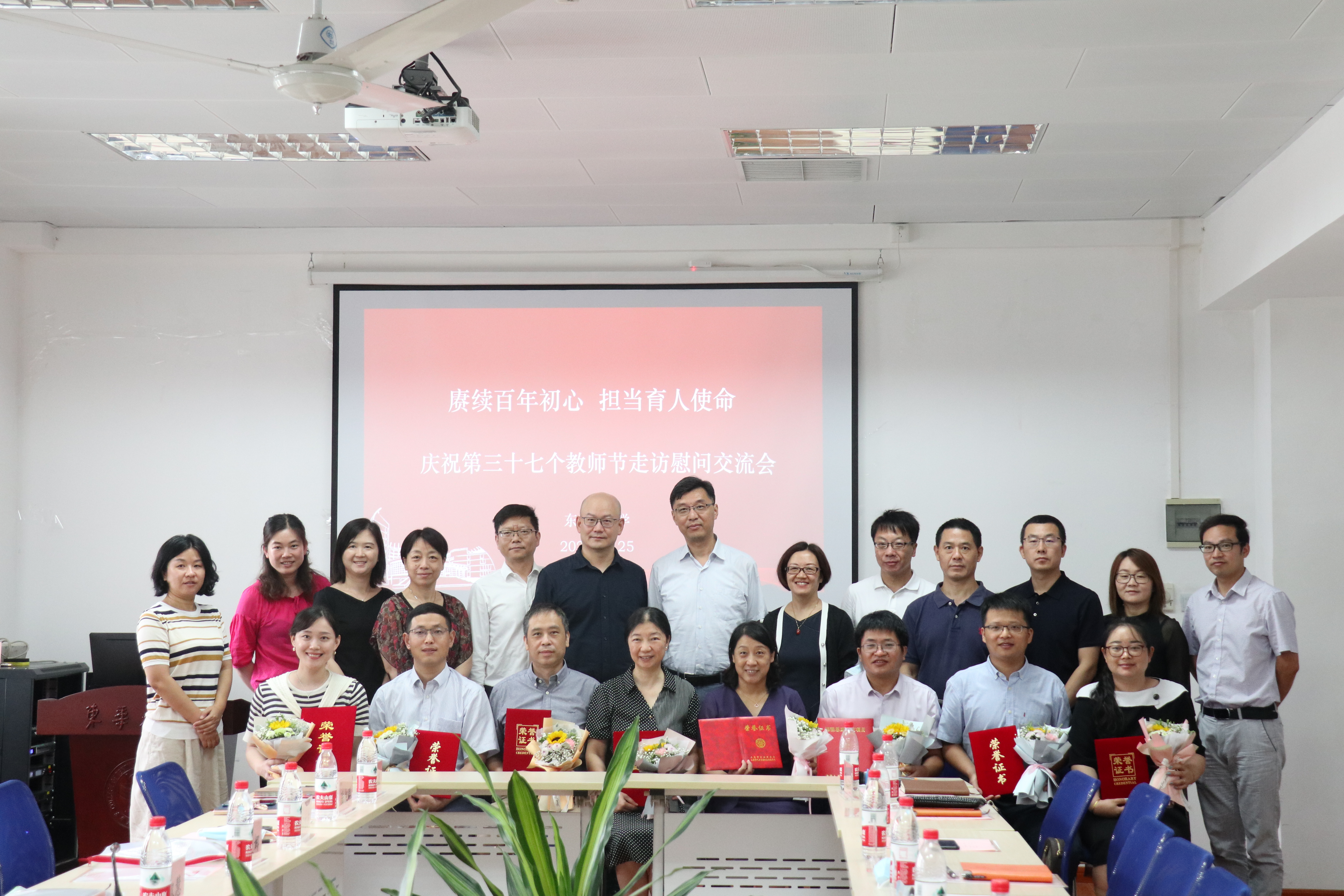 近日,在第三十七个教师节即将到来之际,学校以“赓续百年初心 担当育人使命”为主题,结合师德专题教育和党史学习教育“我为群众办实事”,开展教师节慰问座谈活动。党委书记刘承功前往金沙js3833,走访慰问教师代表,并与一线教师亲切座谈交流,向全体教职工致以节日问候和诚挚敬意。党委副书记刘淑慧,相关学院部处负责人共同参加。