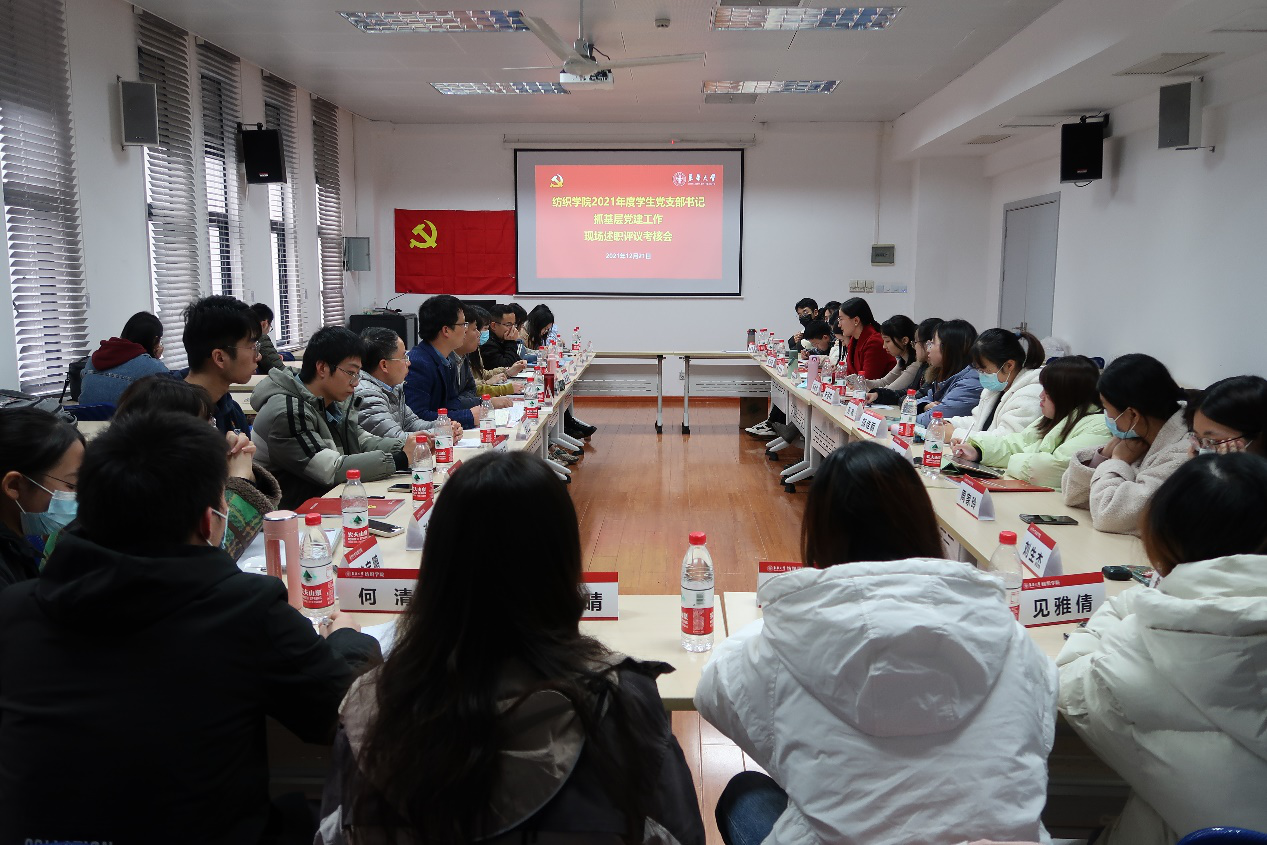 (金沙js38332021年度学生党支部书记现场述职评议考核会现场)