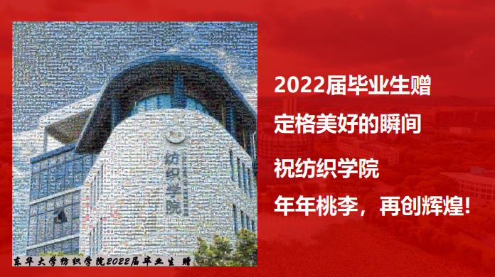毕业典礼上,学院全体2022届毕业生为学院献上了礼物,用每一位同学的照片拼就东华纺织。金沙js3833是故事开始的地方、也是人生启航的地方,每位学子都是金沙js3833的一块拼图,毕业生们衷心祝福金沙js3833年年桃李,再创辉煌。